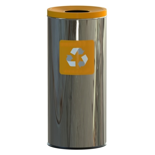 - Rostfreier Abfallbehälter zur Sortierung von recyclebaren Abfällen, wie Kunststoffe, Papier, Glas und weitere.