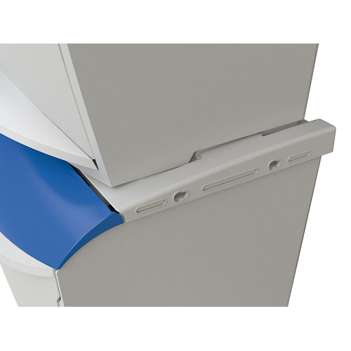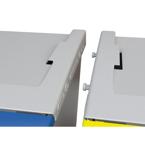 - Die Konstruktion des Behälters ermöglicht die Verbindung in horizontaler als auch vertikaler Lage und gestaltet so eine stabile Einheit.