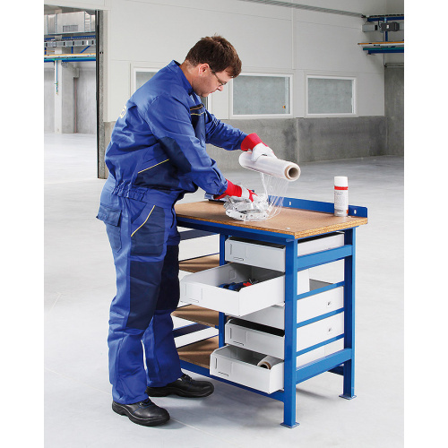 - Die Konstruktion der Arbeitstische besteht aus Stahlprofilen.