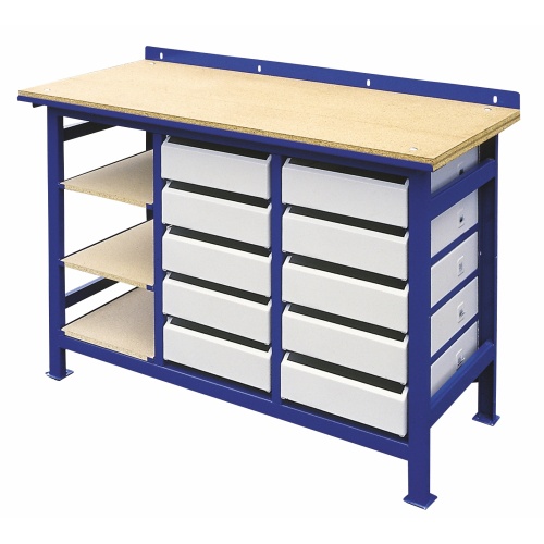 - Die Arbeitsfläche und Fächer sind Holzspanplatten.