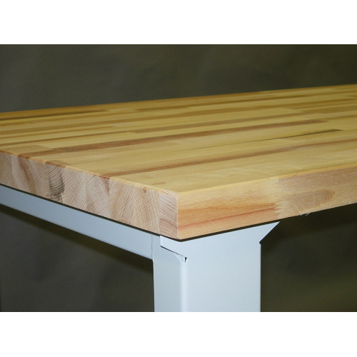 - Arbeitsplatte des Tischs aus massiver, wasserabweisenden, geklebten Platten aus Buche, Dicke 40 mm.