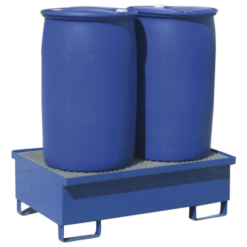 - Auffangwannen geeignet zur Lagerung von 2 x 200 l Fässern. Die Ausführung mit Rost vereinfacht den Umgang mit den Fässern.
