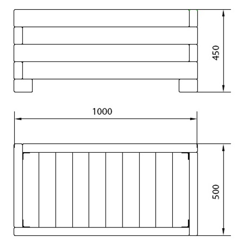 - Behälter für Blumen hergestellt aus druckimprägniertem Kiefernholz.
