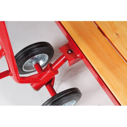 - Eine praxisbewährte Konstruktion einer fahrbaren Bühne, welche mit einer Deichsel verbunden ist und somit einen leichten Umgang mit dem Material garantiert.