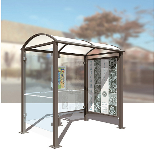 - Alle unsere Bushaltestellen werden mit einer Fahrplanvitrine geliefert: Aluminiumrahmen mit integrierter Aufhängung, Stärke 30 mm (H x B) 750 x 550 mm. Flügeltür ist auswechselbar und beidseitig. Im Falle der Beschädigung der Tür einfacher Austausch ohne Verwendung von Werkzeugen oder Demontage der Vitrine. Gläserne Verkleidung aus Sicherheitsglas, Dicke 4mm. Sicherheitsschloss mit zwei Schlüsseln am Türprofil. Alle Verbindungen sind abgedichtet. Verkleidung der Vitrine aus verzinktem Blech lackiert mit weißer Farbe.