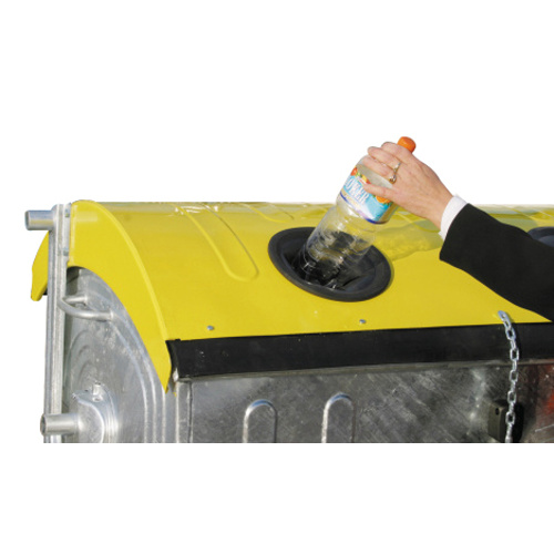 - Für die Abfallsortierung kann der Deckel mit entsprechendem Einwurf und Farbe ausgestattet werden.