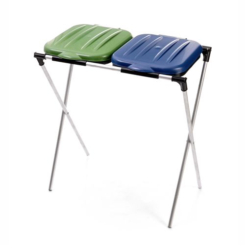Einführung » ABFALLBEHÄLTER » Müllsackständer » Mit Plastikdeckel » Klappständer » Doppelter Sackständer mit Kunststoffdeckeln - blau-grün