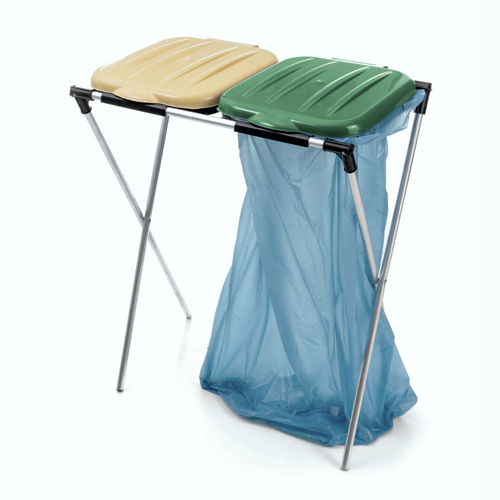 Doppelter Sackständer mit Kunststoffdeckeln - grün-gelb