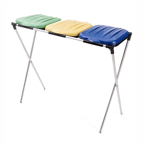 Dreifacher Sackständer mit Kunststoffdeckeln - blau-grün-gelb