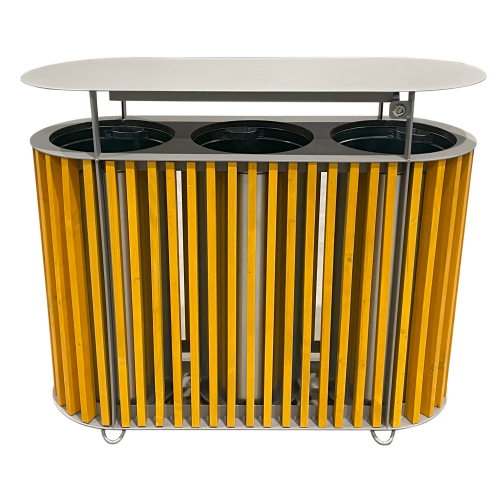 Einführung » ABFALLBEHÄLTER » Abfallbehälter außen » Holz » Dreifachkorb Holzkorb mit Baldachin 3 x 50 l