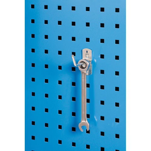 - Die Halterungen werden an die Q-System Paneele, die perforierten Wände der Schränke, Tische oder Werkstattwagen gehängt.