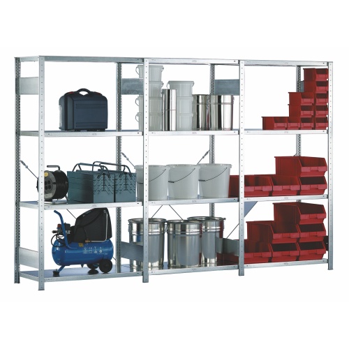 - Metallregal, verzinkt, nicht verschraubt.