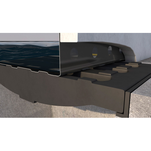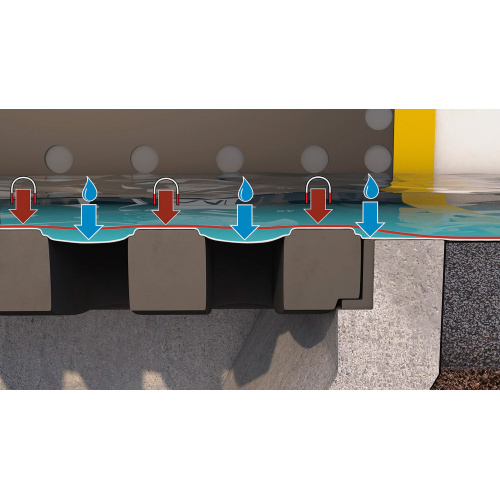 - Nach Belastung der Folie mit Flüssigkeit liegt der Verschluss perfekt am Profil des Kanaleinlaufs an und verhindert das Eindringen von Flüssigkeit.