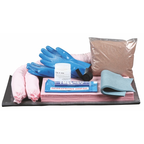 - 1x Sorptionsplane USP, 10x Sorptionsmatte, 2x Sorptionsschlangen, 2 kg UNV Sorptionssplitt ECO-DRY®, 1x Schutzhandschuhe, 1x schnellhärtende Spachtelmasse REO®, 1x Gummidruckbandage für ohrleitungen, 1x Abdichtpaste 0,5 kg, 10x schnellsaugendes Tuch, 2x Ablagebeutel mit Schnur, 2x Warnaufkleber GEFÄHRLICHER ABFALL, 1x Eimer 30 l ohne UN Code.