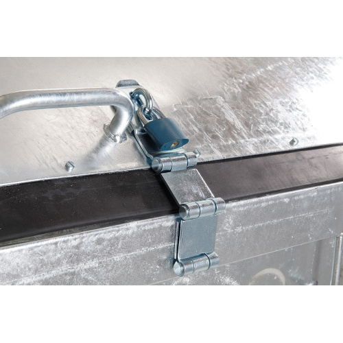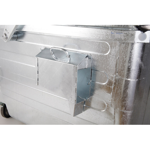 - Auf Kundenwunsch können die Container mit anderen Radbeschlägen, Zentralbremse, Verschlussdeckel, Feuerzeug-Al-Deckel, Aufklebern mit Beschriftung usw. geliefert werden. - Nach Vereinbarung können die Container in stapelbarer Ausführung geliefert werden, die für den Ferntransport geeignet ist.