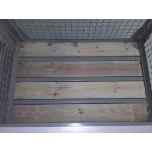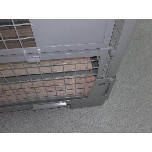 - Die Boxen bestehen aus dem Bodenrahmen und Gitter Seitenteile. Sie werden in der Ausführung mit zu öffnendem Seitenteil geliefert.