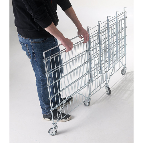 - Der Wagen kann platzsparend zusammengeklappt werden.