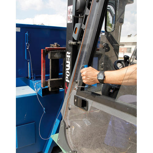 - Der Kippprozess wird mittels Seilzug vom Fahrerplatz des Gabelstaplers ausgelöst.