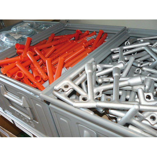 - Alle Kistentypen sind mit einem Stapelsystem versehen, das die Lagerung in mehreren Schichten ermöglicht.
