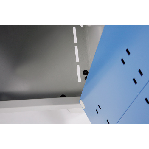 - Hochwertige Oberflächenbehandlung durch Pulverlack, Korpus grau RAL 7035, Türen grau RAL 7035 oder blau RAL 5012.
