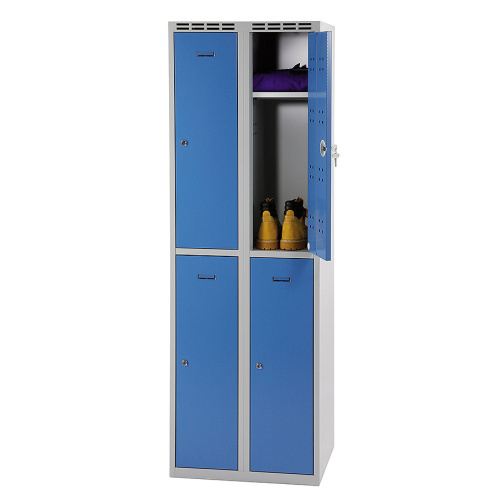 - Hochwertige Oberflächenbehandlung durch Pulverlack, Korpus grau RAL 7035, Türen grau RAL 7035 oder blau RAL 5012.