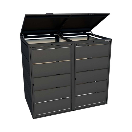 - Moderne und ästhetische Mülltonnenbox mit einer langlebigen und soliden Konstruktion aus verzinktem Stahlblech.
