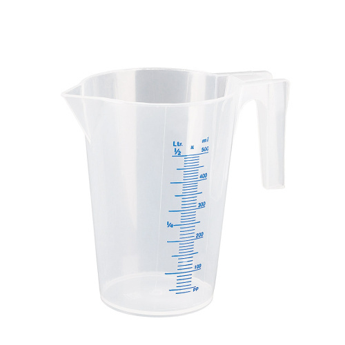 - Transparenter Kunststoff Messbecher aus Polypropylen beständig gegen Öle und Säuren.