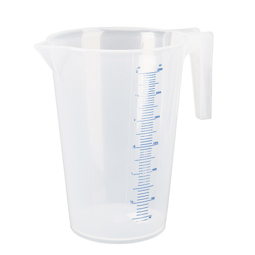 - Transparenter Kunststoff Messbecher aus Polypropylen beständig gegen Öle und Säuren.
