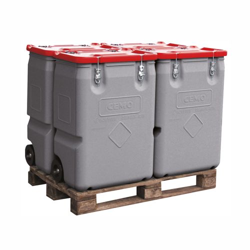 Kunststoffbehälter mit einem Volumen von 250 l für feste Gefahrstoffe.