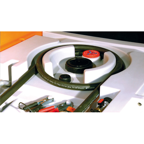 - Die Pumpstation ist mit einem integrierten Griff für die Ausgabepistole, der Befüllöffnung, Behälterentlüftung versehen.