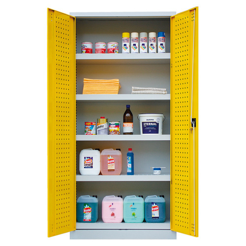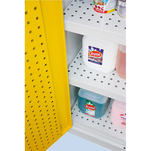 - Auf der Innenseite der Tür perforierte Versteifung, die zum Aufhängen von Werkzeughalterungen dienen kann.
