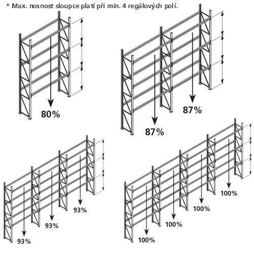 * Die max. Tragfähigkeit des Pfostens gilt bei min. 4 Regalfeldern.