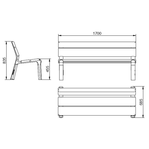 ABMESSUNGEN B x T x H (mm) - 1700 x 685 x 455/835