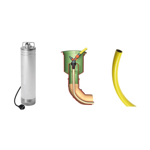 - Der Wasseranschluss befindet sich im äußeren Anschlussschacht zusammen mit einem 10 m Schlauch, der Bestandteil des Sets ist.