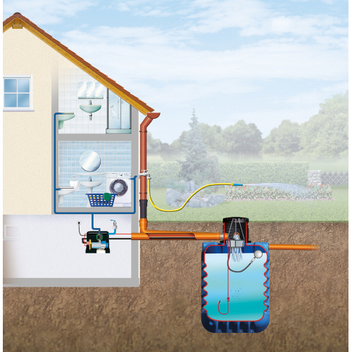 - Das komplette Set Haus Premium stellt die Nutzung von Regenwasser nicht nur im Garten und Exterieur sicher, sondern auch im Interieur (WC,...).