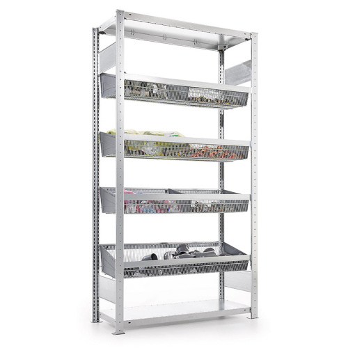 Einführung » LAGERLÖSUNGEN » Regale » Spezielle Regale » Regale mit Drahtkörben » Regal mit Drahtkörben Basisfeld mit 4 Körben