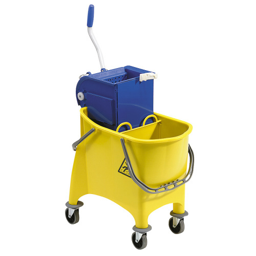 - Der Reinigungswagen ist mit einer Trennwand ausgestattet, die eine Trennung des sauberen und verschmutzten Wassers in 2x 15 l ermöglicht.