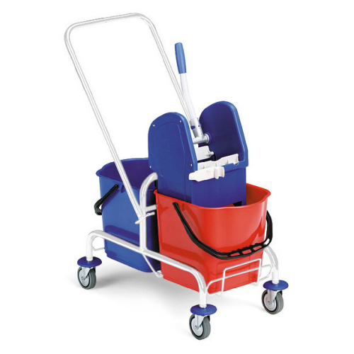- Raumpflegewagen mit zwei Gefäßen, um das Reinigungsmittel und Wasser trennen zu können.
