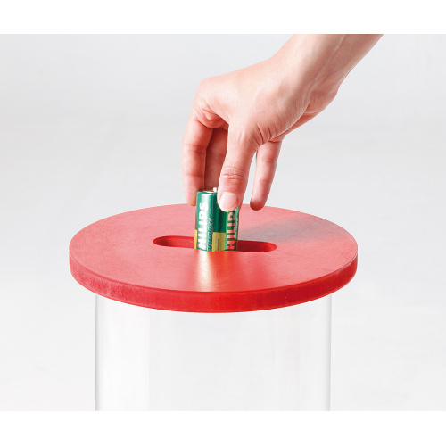 - Attraktiver Behälter zum Sammeln von kleinen Batterien.