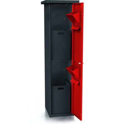 Sběrný box je vhodný pro sběr baterií. Box má dva výklopné otvory s úchyty pro snadné otevírání.