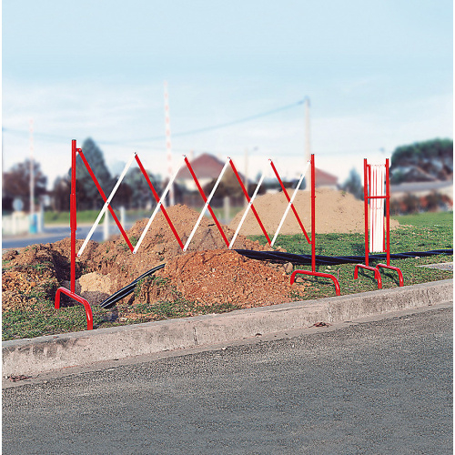 - Praktischer Helfer bei einer schnellen Absperrung einer Fläche. Die Scheren-Variante ermöglicht es, die Sperre an die erforderliche Breite von 400 mm (im zusammengelegten Zustand) bis 3000 mm (im auseinandergezogenen Zustand), anzupassen.