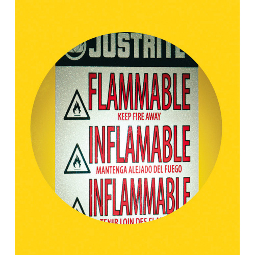 - Die Reflexaufkleber in drei Sprachen weisen auf die Lagerung von gefährlichen, brennbaren Stoffen hin. Die fotoluminiszierende Kennzeichnung erhöht die Sichtbarkeit in der Dunkelheit.