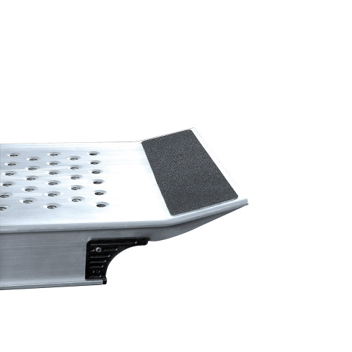 - Steife, leichte Aluminiumkonstruktion mit einer maximalen Tragfähigkeit von 500 kg. Die Rampe ist mit einem einzigartigen rutschfesten Drainageprofil ausgerüstet.