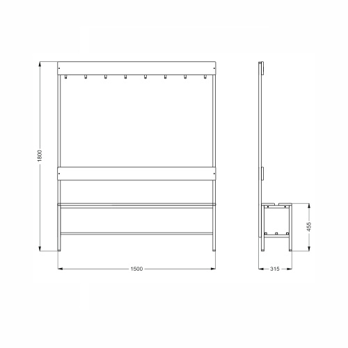 Einführung » WERKSTATTAUSSTATTUNG » Kleiderschränke » Zubehör » Umkleidebank demont. - 1500 mm
