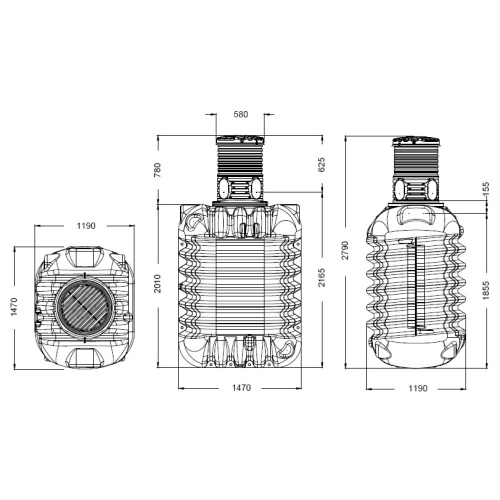 - Der einzelne (Basis) Tank hat ein Volumen von 2,5 m3 und man kann an ihn eine unbegrenzte Anzahl weiterer Tanks anschließen.
