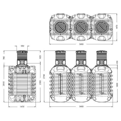 - Der einzelne (Basis) Tank hat ein Volumen von 2,5 m3 und man kann an ihn eine unbegrenzte Anzahl weiterer Tanks anschließen.