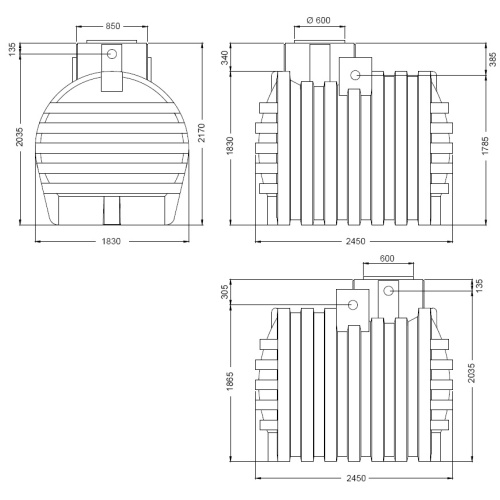 ABMESSUNGEN (mm) - 2450 x 1830 x 2170