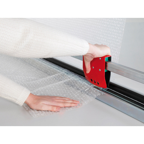 - Tisch hat höhenverstellbare Beine, eine Schneidvorrichtung mit Halter für das geschnittene Material und eine Schneidkassette mit Messer.