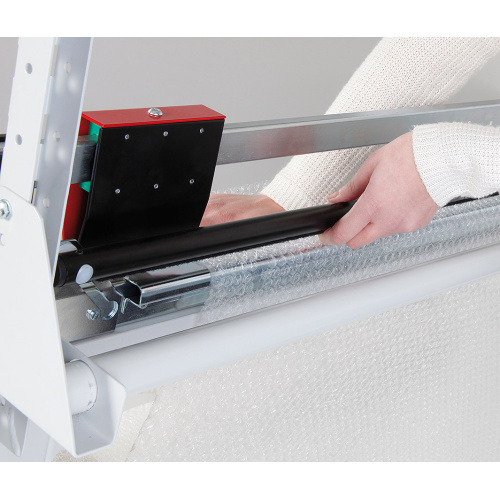 - Die Abrollvorrichtung mit Zentrierkegel kann über oder unter der Arbeitsplatte positioniert werden.
