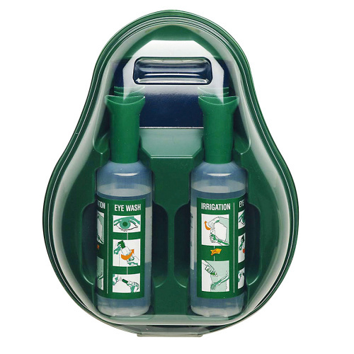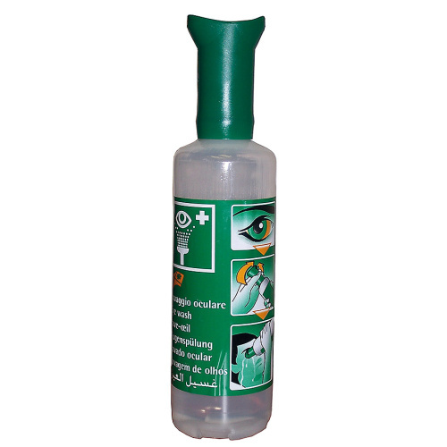 - Die Flaschen für die Spülung der Augen haben eine ergonomisch geformte Augenschale zum Öffnen der Augenlider, die Spülflüssigkeit gelangt somit direkt an das verwundete Auge.